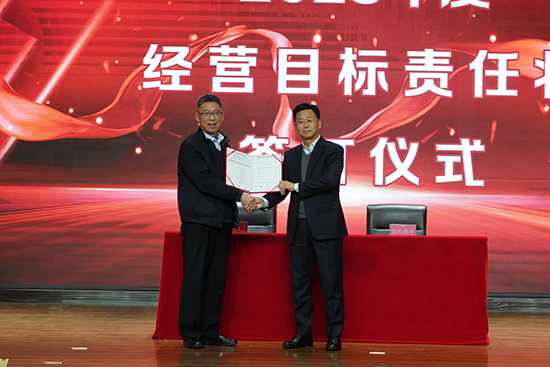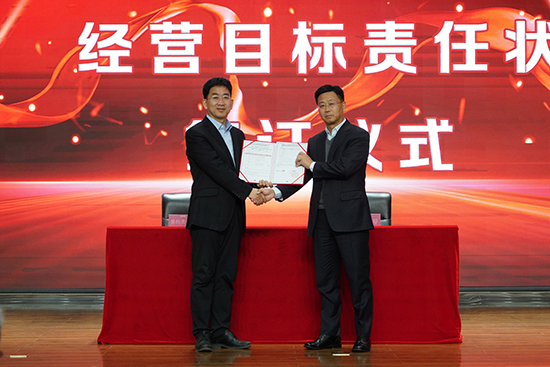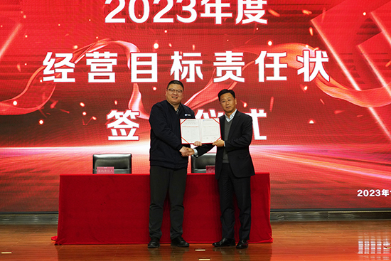 大會(hui) 進行第一項,公司與(yu) 各子公司的高管團隊簽訂經營目標責任狀,PA视讯官方网站高管團隊依次上台與(yu) 董事長進行簽約。