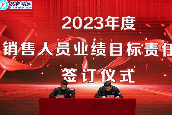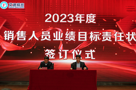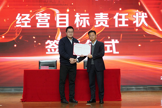 大會(hui) 進行第三項,董事長宋飛發表講話。董事長表示,此次簽約儀(yi) 式目的在於(yu) 將各事業(ye) 部、子公司及銷售團隊的業(ye) 績做出明確要求。每一份責任狀都經過公司的仔細研究與(yu) 推敲,對大家既是激勵,也提供了努力的方向和目標。要想實現目標,努力和付出是必不可少的,今天能夠站在台上進行簽約的人員都是公司的核心人員,你們(men) 不是一個(ge) 人在作戰,而是整個(ge) 團隊在作戰,簽約是一份責任、一份信譽,也是對團隊價(jia) 值的體(ti) 現。責任書(shu) 已簽訂,時間表已明確,路線圖已明晰,接下來擔子就在肩上,腳步就在路上,目標就在前方,希望各位簽約人能齊心協力,努力履約。