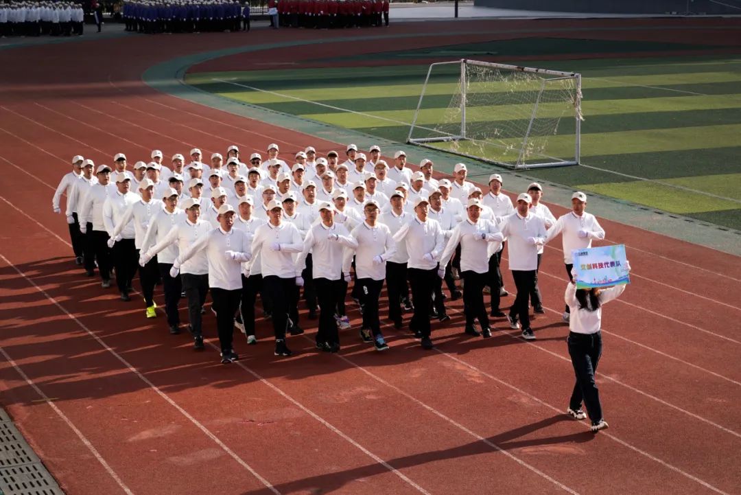清晨的陽光灑滿體(ti) 育場,舉(ju) 旗手、護旗手與(yu) 各事業(ye) 部代表隊踏著整齊的步伐,喊著嘹亮的口號,以昂揚的狀態依次走過主席台和觀眾(zhong) 席,贏得現場陣陣掌聲。